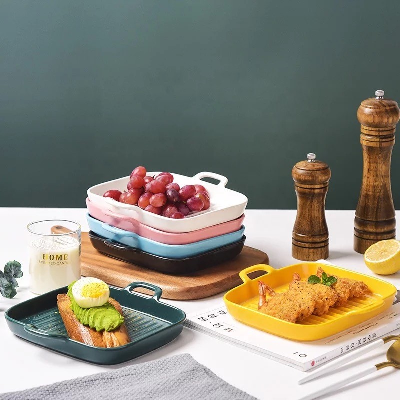 Promo Perlengkapan di Jakarta Barat Piring Keramik Kotak Bake Tray Ceramic Square Grill Pan Steak Plate dari Tidak Ada Merek Kota Jakarta Barat