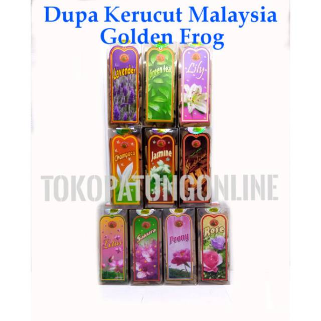 Dupa Golden Frog MalaysiaBarang Import MalaysiaKerucut Isi 50conePembakaran +-15-20menitAroma Sangat Wangi Tergantung Selera Masing2..Sangat Rekomended.All aroma sangat suka dan Selalu Ready StokPEMBELIAN DALAM JUMLAH besar bisa Pm Admin lgsung..Barang DiJAMIN ASLI Lgsung Dr Importir..Tersedia Aromajasmine BEST SELLERlavender BEST SELLERsakuragreenteasandalwood cendana BEST SELLERroseLilyLotusChampakaPeony#goldenfrog#dupakerucut#dupawangi#hiowangi#kerucutgoldenfrog#supplierperlengkapansembahyang#grosirdupa#tokopatungon