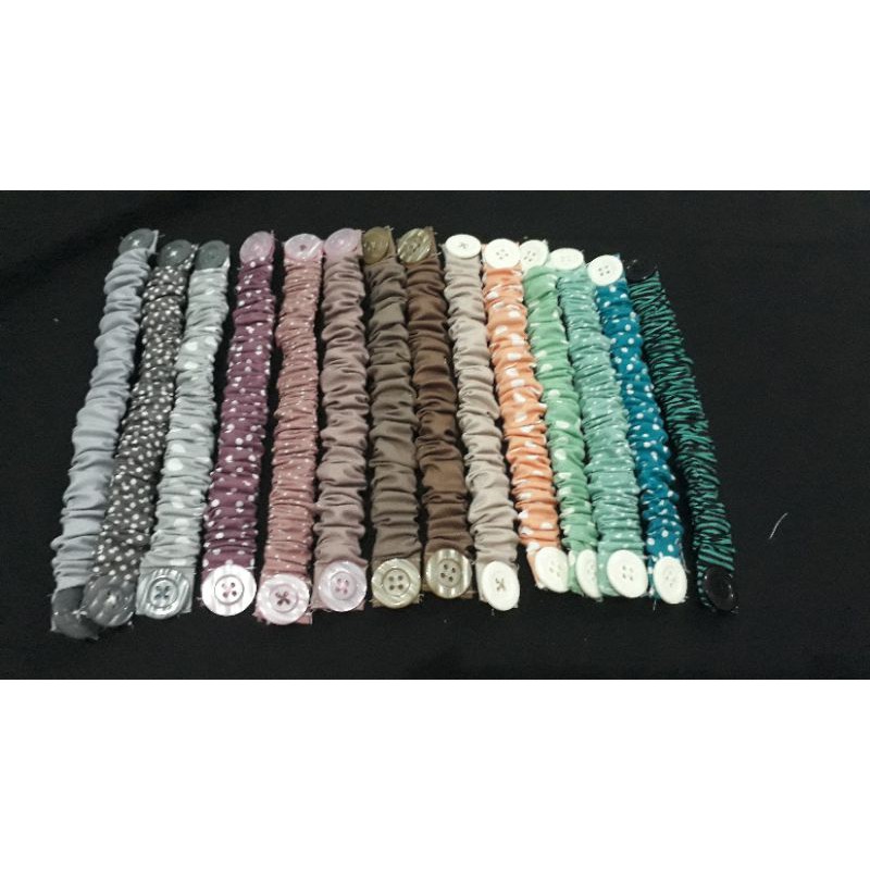 konektor handmade 1. panjang sebelum dipakai -/+ 18 - 19 cm ( bisa lebih sedikit ) lebar cukup jadi dipakai nyaman banget tdk sakit ( karet empuk )2. bahan : katun, toyobo, wolicrepe, katun kaos, katum strech, 3. kancing : batok, kancing kemeja 2 cm2. varian : polos dan mixutk pilih warna n motif chat shope ..trima
