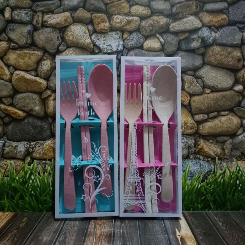 sendok garpu dan sumpit bahan jerami panjang sendok dan garpu 16cm panjang sumpit 16cm untuk warna alas sesui yg ada tidak bisa pilih2 isi 1pak 25 pcs,minimal order 50 pcs (Bahan im