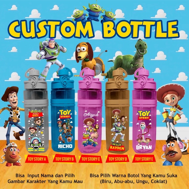Name: Taurielstore Botol Minum Custom Nama, Doraemon/soccer/toy Story/mickey Mouse/minnie Mouse/spongebob